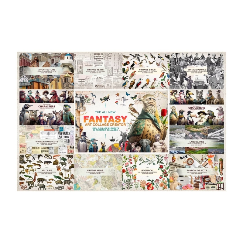 Collage Hunters Dream Bundle is perfect for anyone who wants to unleash their creativity and explore the possibilities of collage art. Whether you're a beginner or a pro, you'll find something to inspire you in this bundle. You'll get access to high-quality images, textures, backgrounds, fonts, brushes, overlays, and more. All the assets are compatible with popular design software such as Photoshop, Illustrator, Canva, etc.