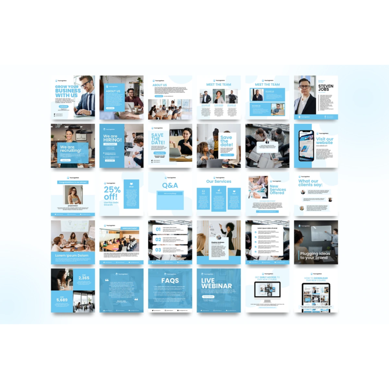 قالب منشور الأعمال هذا عبارة عن حزمة من 90 قالب Canva قابل للتحرير مصمم لأصحاب الأعمال والوكالات ورواد الأعمال والمزيد. يمكنك بسهولة تحرير الألوان والعناصر والصور والنصوص وغيرها الكثير لتناسب علامتك التجارية. سيساعدك هذا أيضا على زيادة المشاركة ومنح حساباتك على وسائل التواصل الاجتماعي مظهرا أكثر اتساقا وعلامة تجارية.