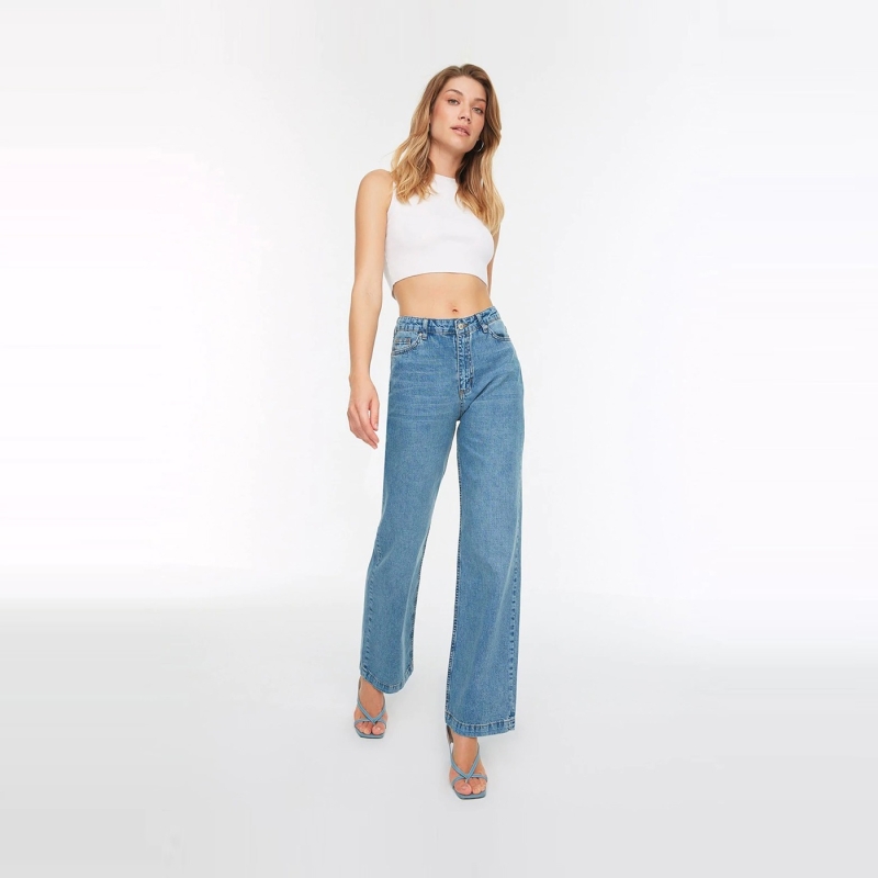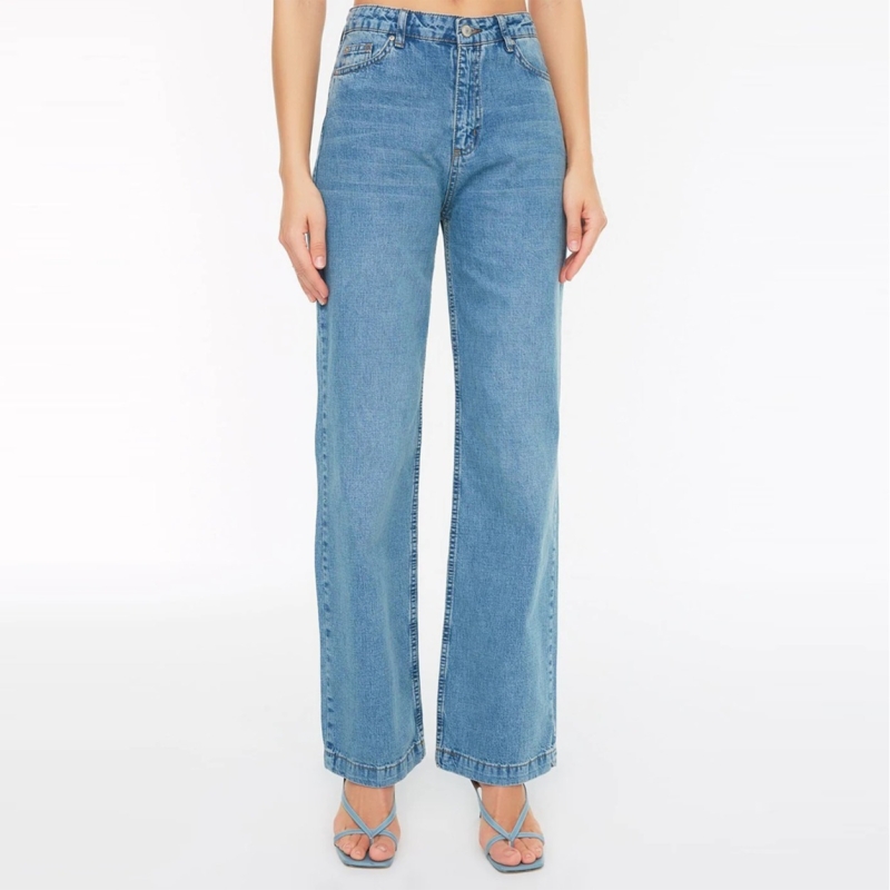 جينز أزرق مستقيم مناسب للنساء