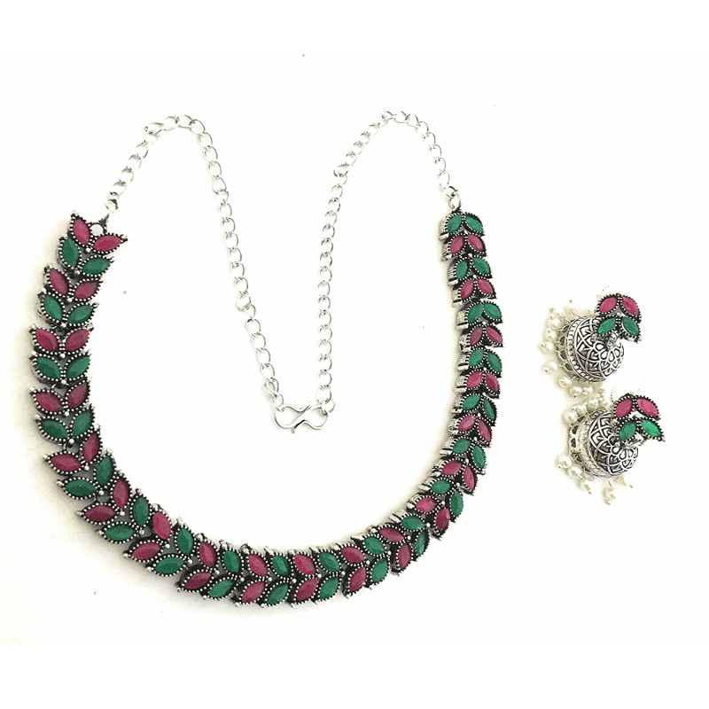 German Silver Stone Studded Oxidized Jewellery Set