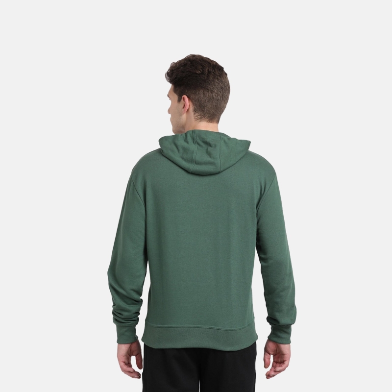 • Green solid sweatshirt has a hooded, 1 kangaroo pocket pockets, long sleeves, closure, ribbed hem.