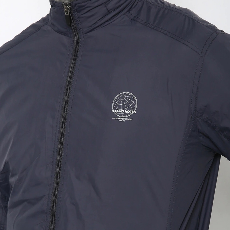 Solid puffer jacket, has a mock collar, 2 pockets ,has a zip closure, long sleeves, straight hemline, polyester lining.