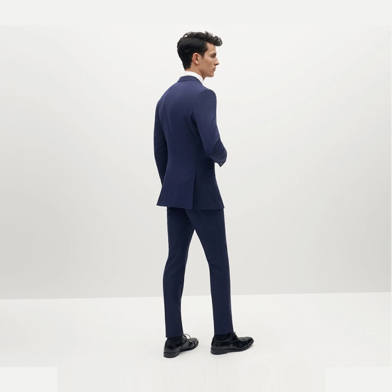 Peter England Polyester Blend Men Navy Blue Three Piece Suit