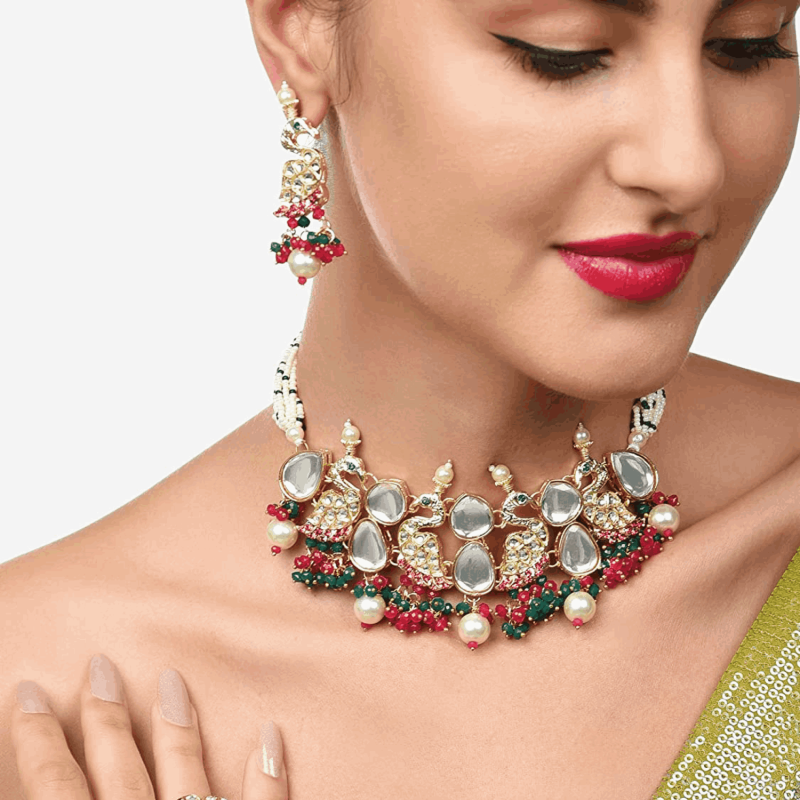 Feature: You can never go wrong with a choker necklace! Indian style choker necklaces have been a staple at bridal parties and traditional events since forever & why not? Beautifully crafted and bedazzled with gems they’re perfect with ethnic outfits! A choker necklace is the type of fashion accessory that has the potential to upgrade the simplest of traditional outfits! Wear it to traditional events or weddings. We thought why not save this gorgeousness for you!