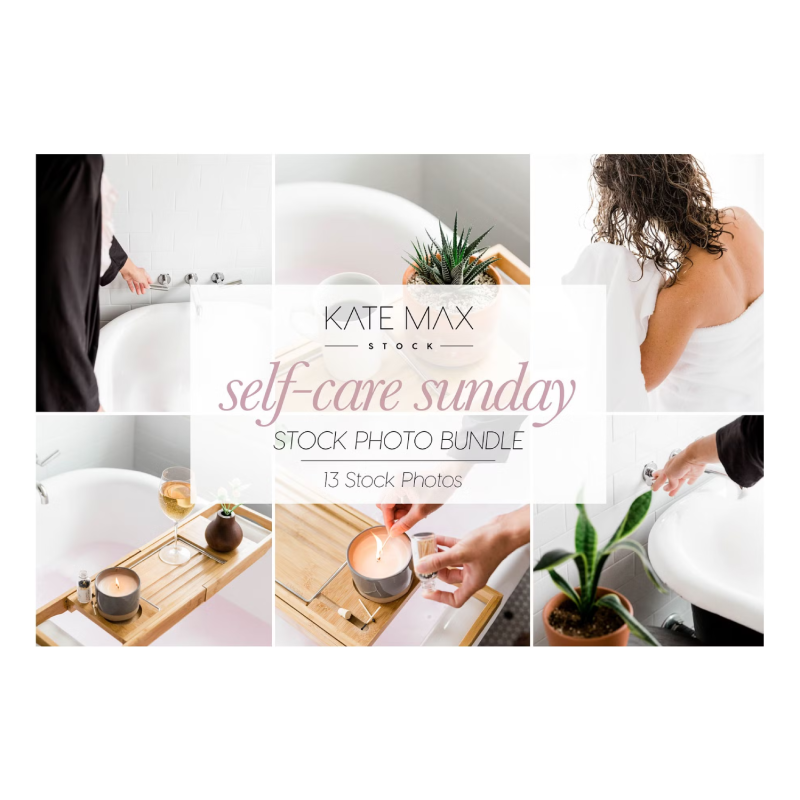 High-resolution landscape- and portrait-oriented images. An elegant bath scene a perfect self-care afternoon beautifully shot from a variety of angles and compositions. Perfect for your modern, clean lifestyle posts and feminine branding and ready to be customized with your designs for your business!