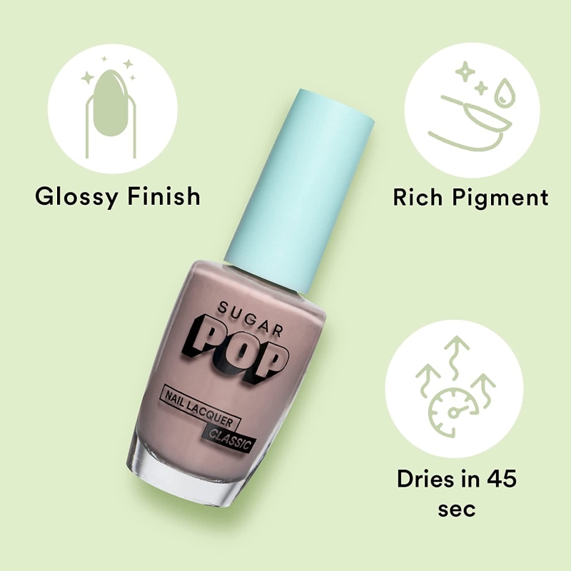 • SUGAR POP NAIL LACQUER has a quick drying formula that dries in 45 seconds giving you a perfectly glossy finish