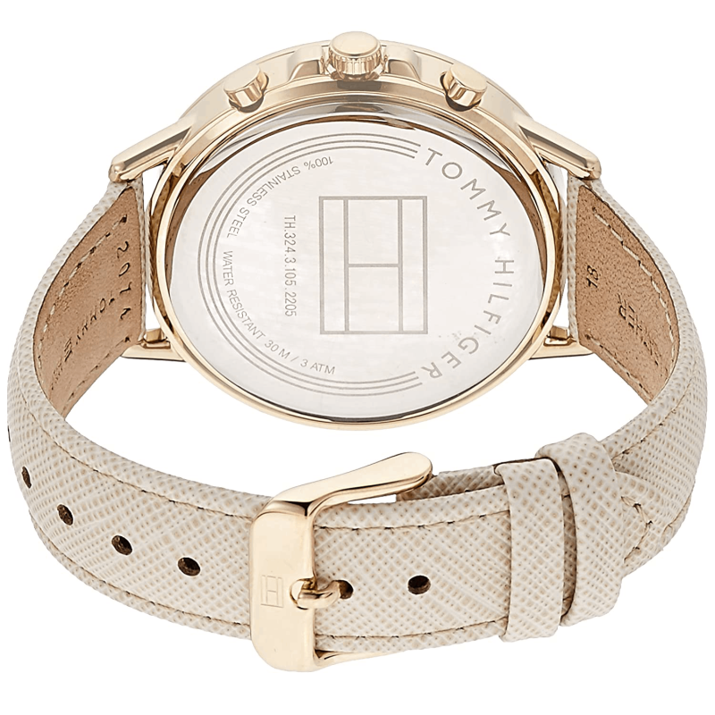 Band Color: Beige, Band Material: Leather; Water Resistance: 3 ATM