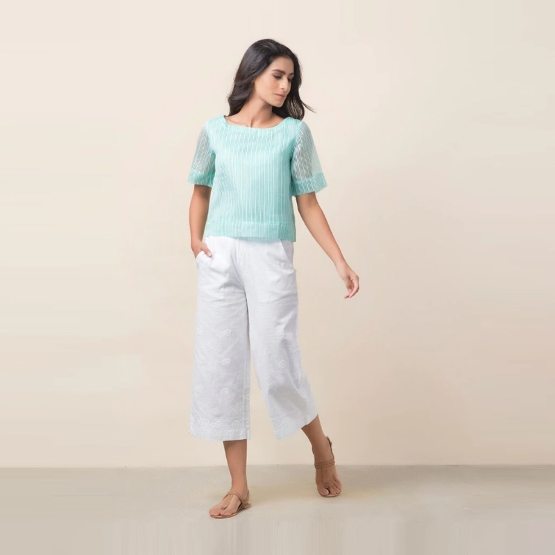 Viscose Silk Striped Short Top