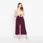 Women Paper-Bag Waist Culottes with Fabric Belt Trouser